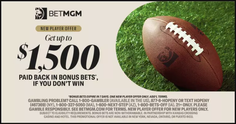 Gambling Problem? Call 1-800-GAMBLER. See BetMGM.com for Terms. 21+ only. MO Only. New Customer Offer (If applicable). Subject to eligibility requirements. Bonus bets are non-withdrawable. Please gamble responsibly. Minimum $10 deposit required. Bonus bets expire in 7 days. One new player offer. Add’l terms.