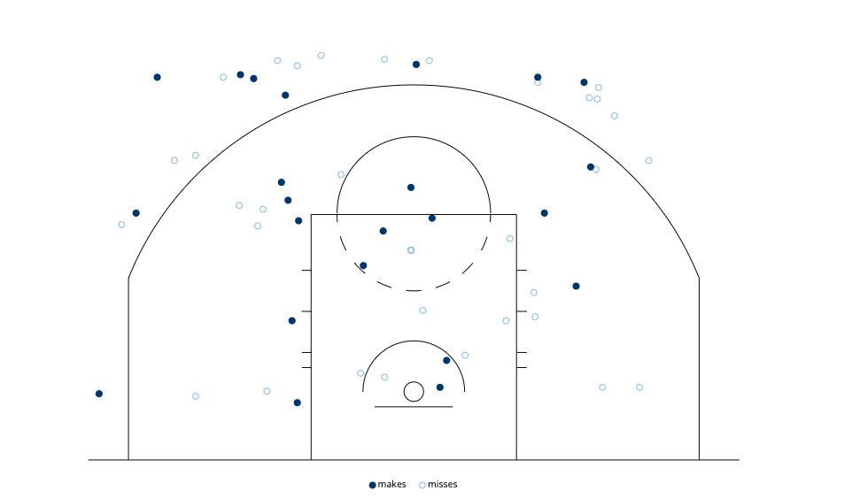 We've been on this prop like a see-saw throughout these NBA Finals, but so far we've cashed every time. Booker is shooting at just 30% from deep over his last ten games, which includes outings where he went 1-7 (3x), 1-8 and 0-5. The Bucks have been able to limit Booker's impact from the perimeter by pushing him out deeper, way behind the three-point line (as the below shot chart shows). Even though he's getting the volume off, the value of the shots are low. The best strategy here is to fade Book away from home.