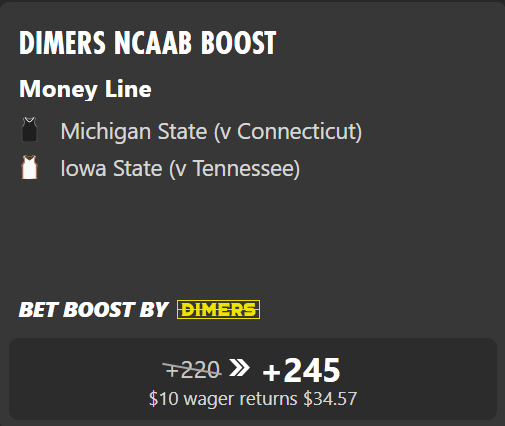 Thanks to bet365 sportsbook, we get boosted odds on this CBB parlay, to raise it from odds of +220 to +245 for an even bigger payout.