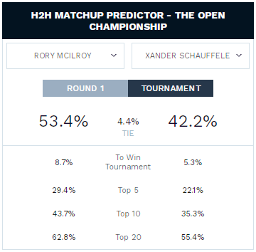 Click on the image below to get started with Dimers' powerful matchup predictor for the 2022 Open Championship.