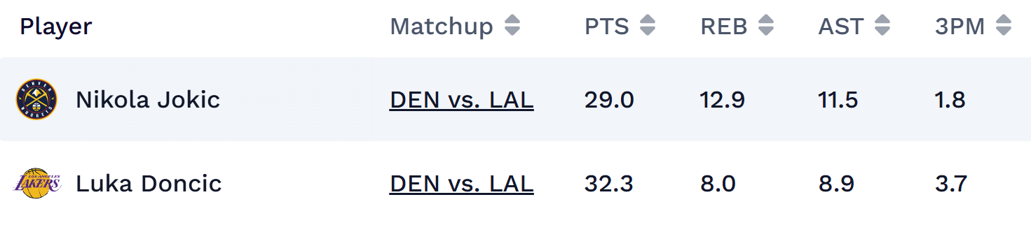 That's evident in our projections where the elite of the elite, Nikola Jokic and Luka Doncic project atop the board tonight, with a line of 32.3 points, 8.0 rebounds and 8.9 assists for Luka and 29.0 points, 12.9 rebounds and 11.5 assists for Jokic.