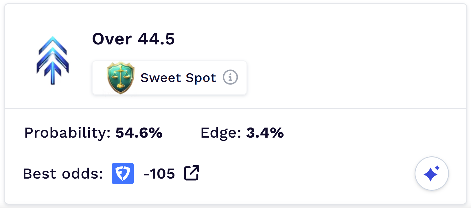 With a 54.6% probability of going over 44.5 points in Eagles-Commanders, this play grades with a 3.4% edge and also lands in our Sweet Spot - NFL Totals in this edge range have returned a 10.7% ROI over 40 bets this season, identifying a consistent profit for the Dimers model.