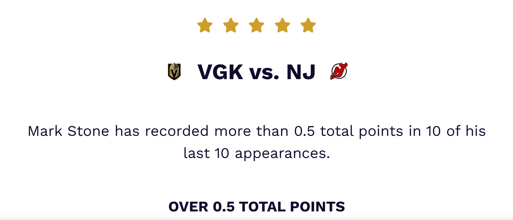 | Mark Stone (Golden Knights) | To record 1+ point | 10 of last 10 | -210 |