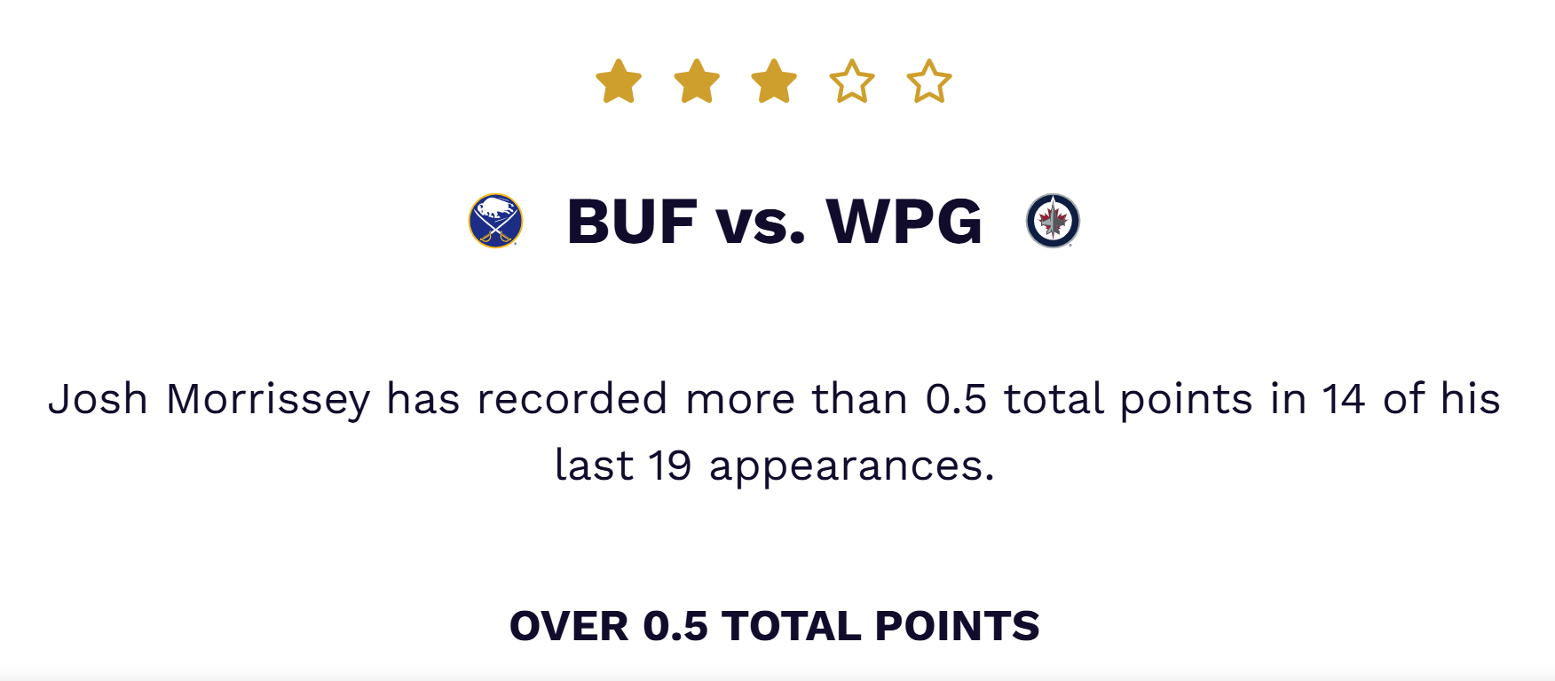 | Josh Morrissey (Jets) | To record 1+ point | 14 of last 19 | -165 |