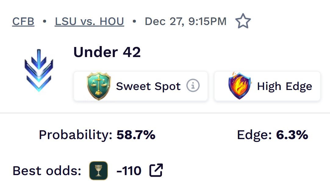 ✅ 1x College Football Total bet identified by the Sweet Spot Signal