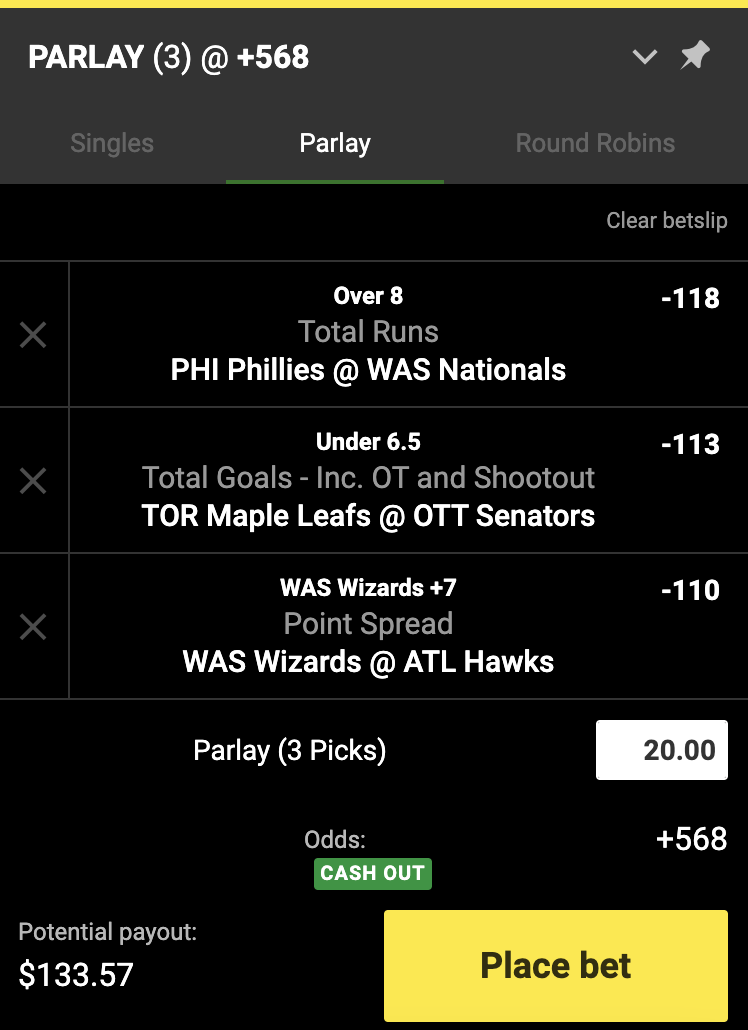 💰 Parlay with Unibet (+568)