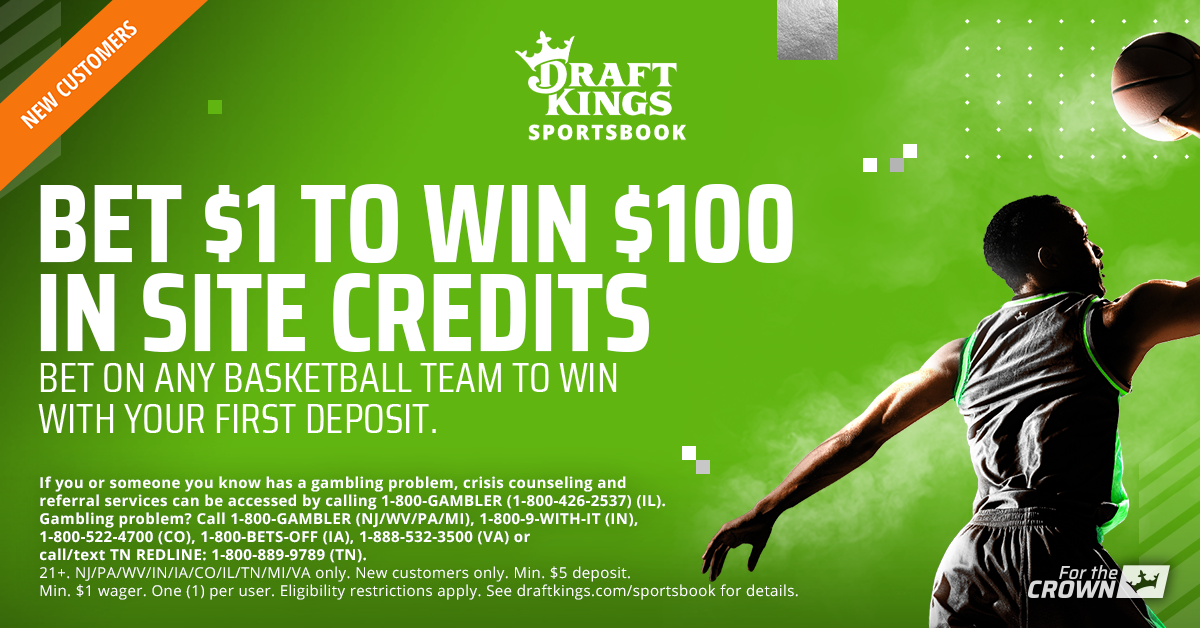 New customers who make their first deposit with DK Sportsbook can bet $1 on the winner of any NBA Playoffs game, with $100 in DK dollars coming your way if you pick correctly!
