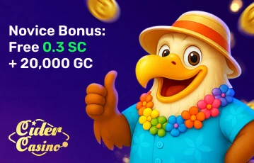 When you join Cider Casino as a new member, you’ll receive 20,000 Gold Coins (GCs) and 0.3 Sweeps Coins (SCs). I'll provide more details about that and other aspects of the site in my Cider Casino review.
