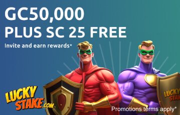 As a Lucky Stake user, you can get up to 50,000 Gold Coins and 25 Sweepstakes Coins whenever a friend signs up using your unique link and purchases up to a total of $100 worth of Gold Coin bundles.