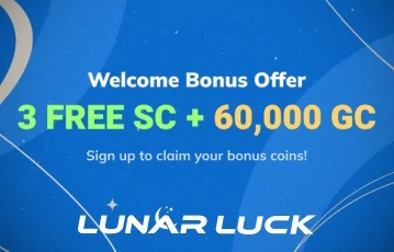 When you use the links or banners on this page, register an account at Lunar Luck, and verify your ID, you’ll get 60,000 Gold Coins and 3 Sweeps Coins.