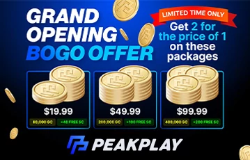 In addition to the no-purchase sign-up bonus, PeakPlay also has three special Gold Coin packages called the “Grand opening BOGO” packages for new players.